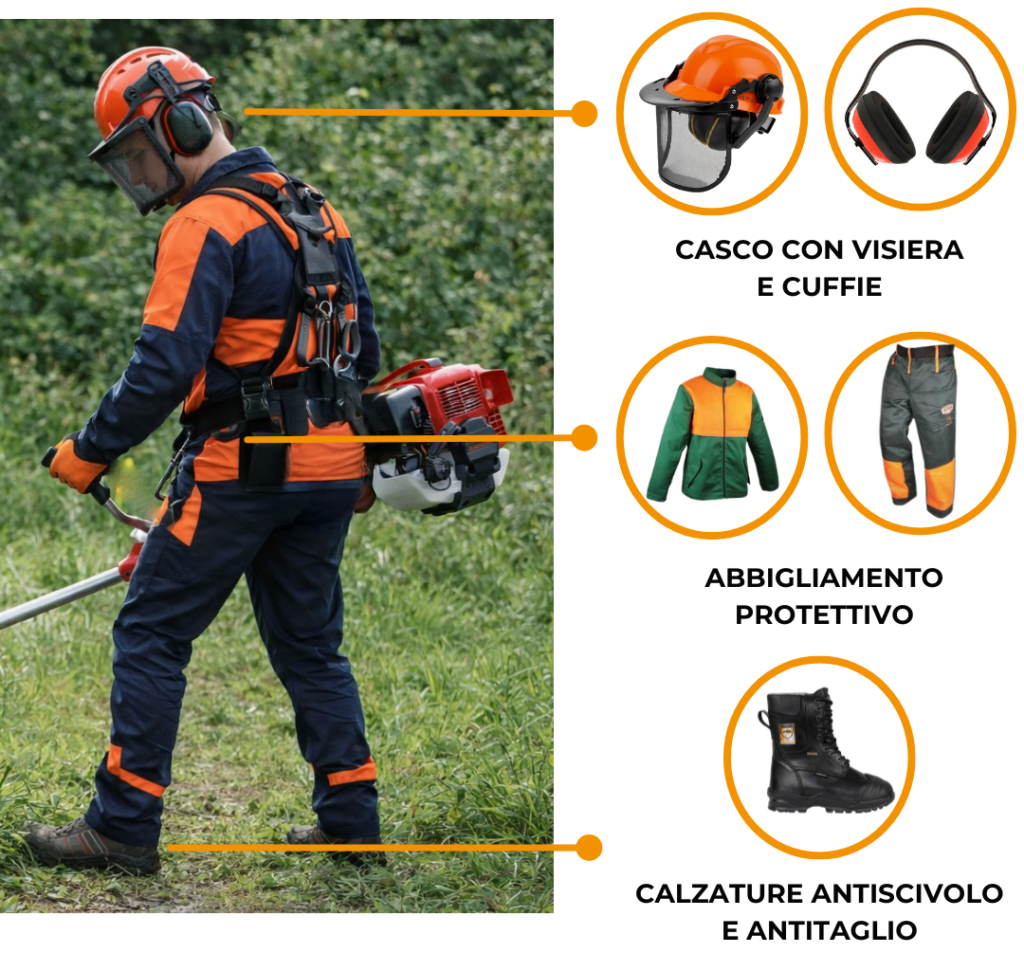 L’uso del decespugliatore comporta rischio di proiezione di sassi e detriti, esposizione a rumore elevato e contatto con vegetazione fitta, talvolta spinosa o legnosa. Anche durante uno sfalcio apparentemente semplice possono verificarsi rimbalzi di materiale o urti contro oggetti nascosti nel terreno.